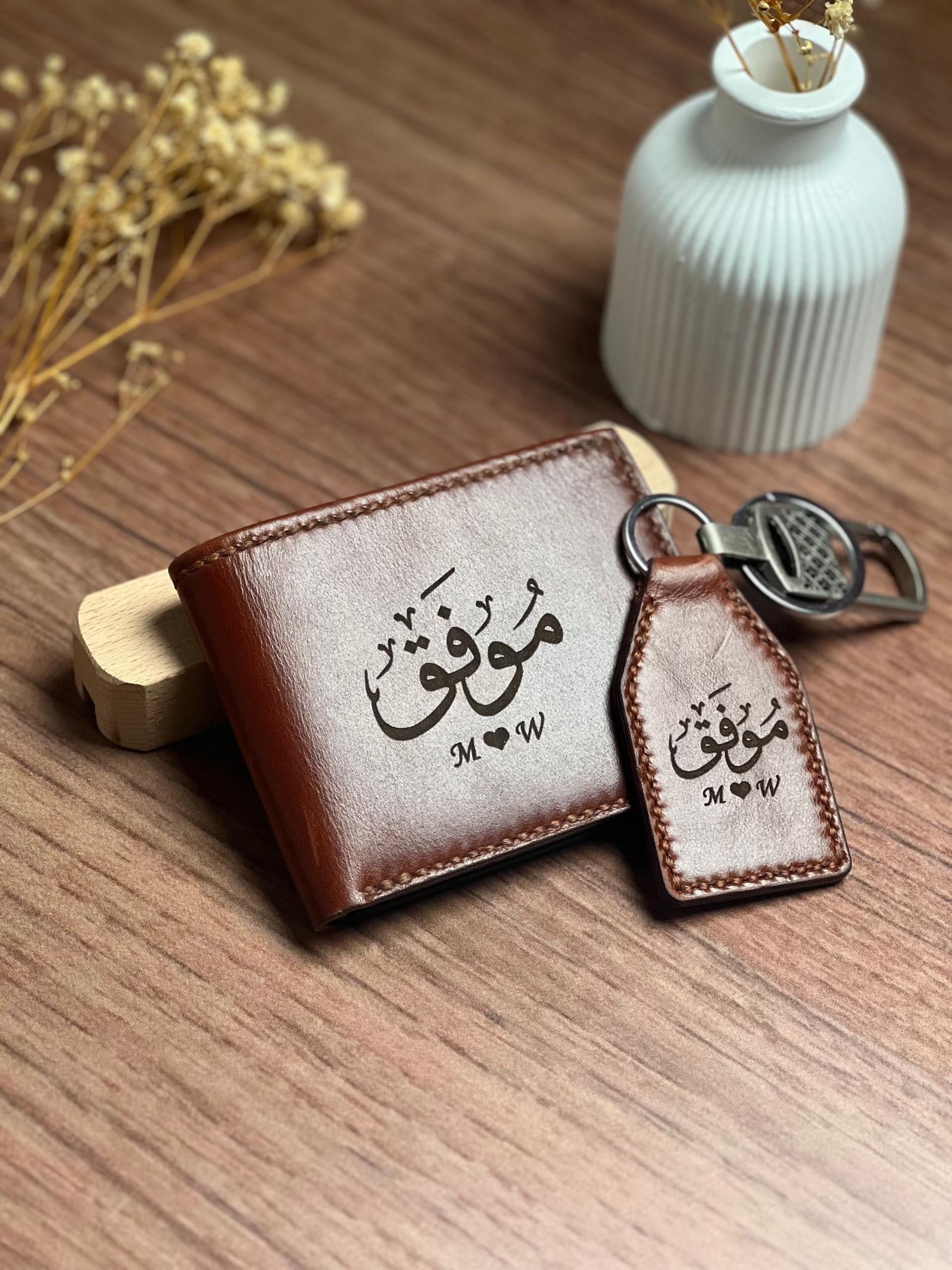 طقم محفظة نقود و علاقة مفاتيح من الجلد الأصلي الفاخر