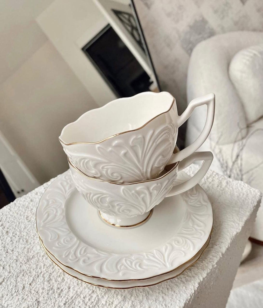 ☕✨ طقم فنجان حليب مع فنجان صغير ✨☕